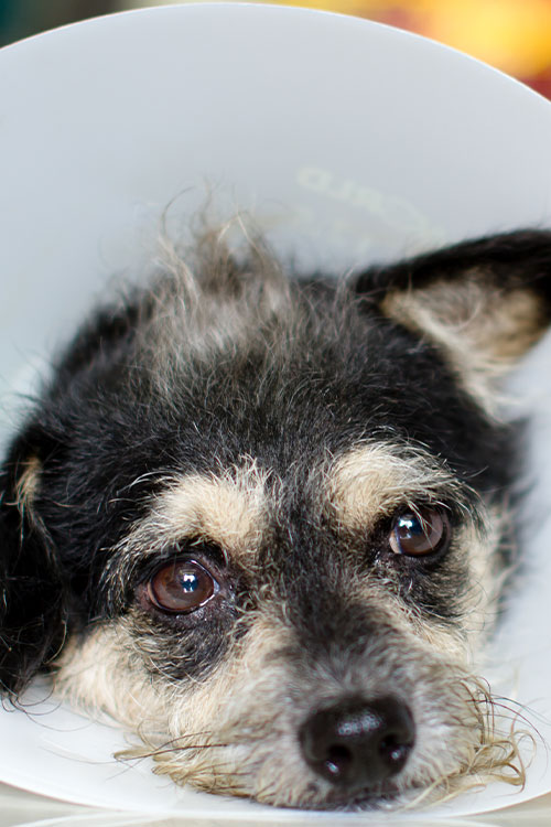 Exercise restriction is very important post-operatively as it can reduce swelling, pain, and infection rates. It is very important to keep a close eye on your pet’s incisions and prevent them from licking. Some pets require the use of an Elizabethan collar (the dreaded cone of shame!) if they are licking their incision to prevent infection rates. After 10-14 days, they are usually in the clear and can resume normal activity.